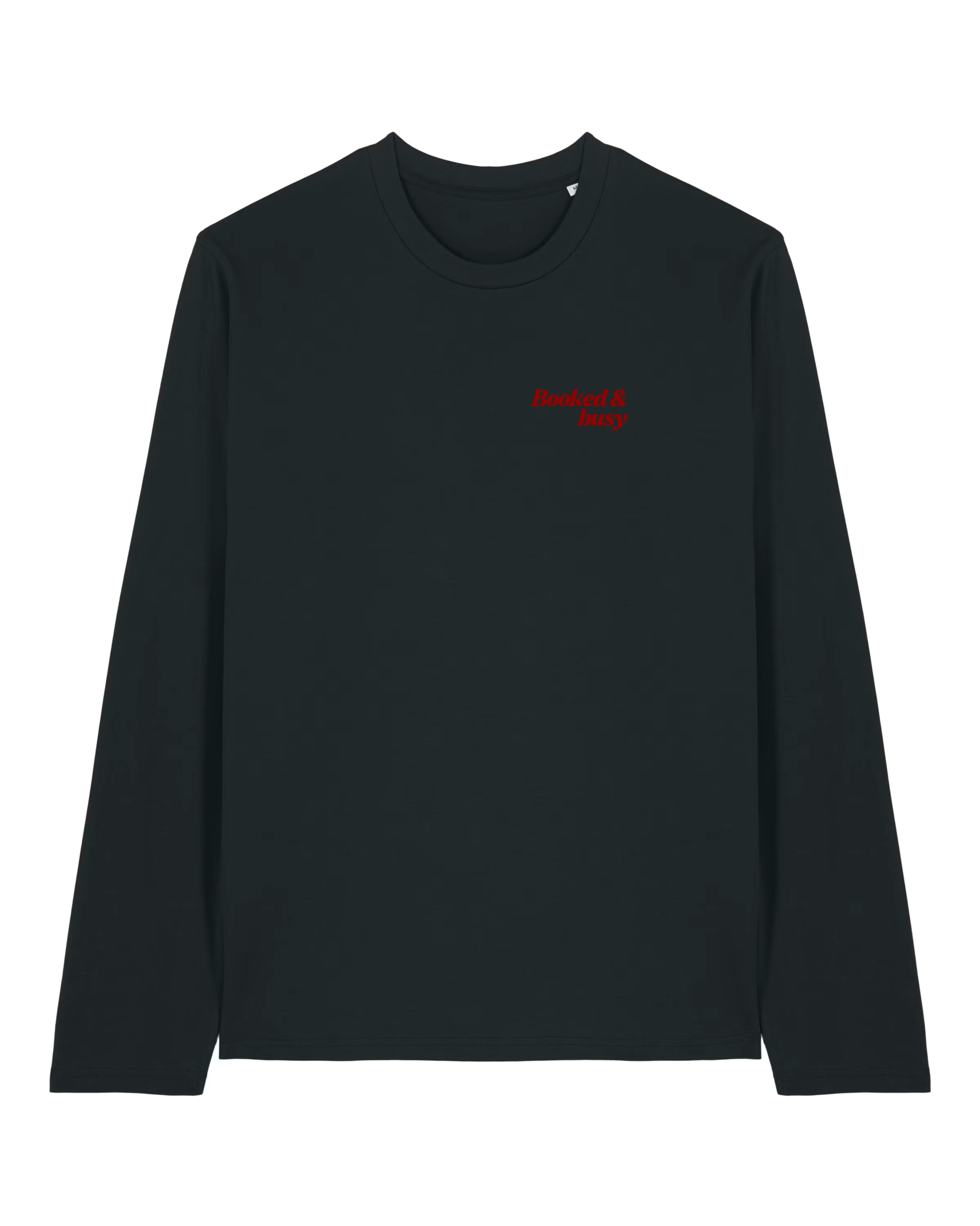Unser Booked & busy Longsleeve ist in den Farben grau und schwarz erhältlich. Es hat eine sehr lässige Passform, die insgesamt eher Oversize sitzt und dadurch größer ausfällt - bitte beachte die Größentabelle. Das Shirt besteht aus 100% Baumwolle (Bio-Baumwolle). Unser Longsleeve ist auf der Vorder- und Rückseite bedruckt.
