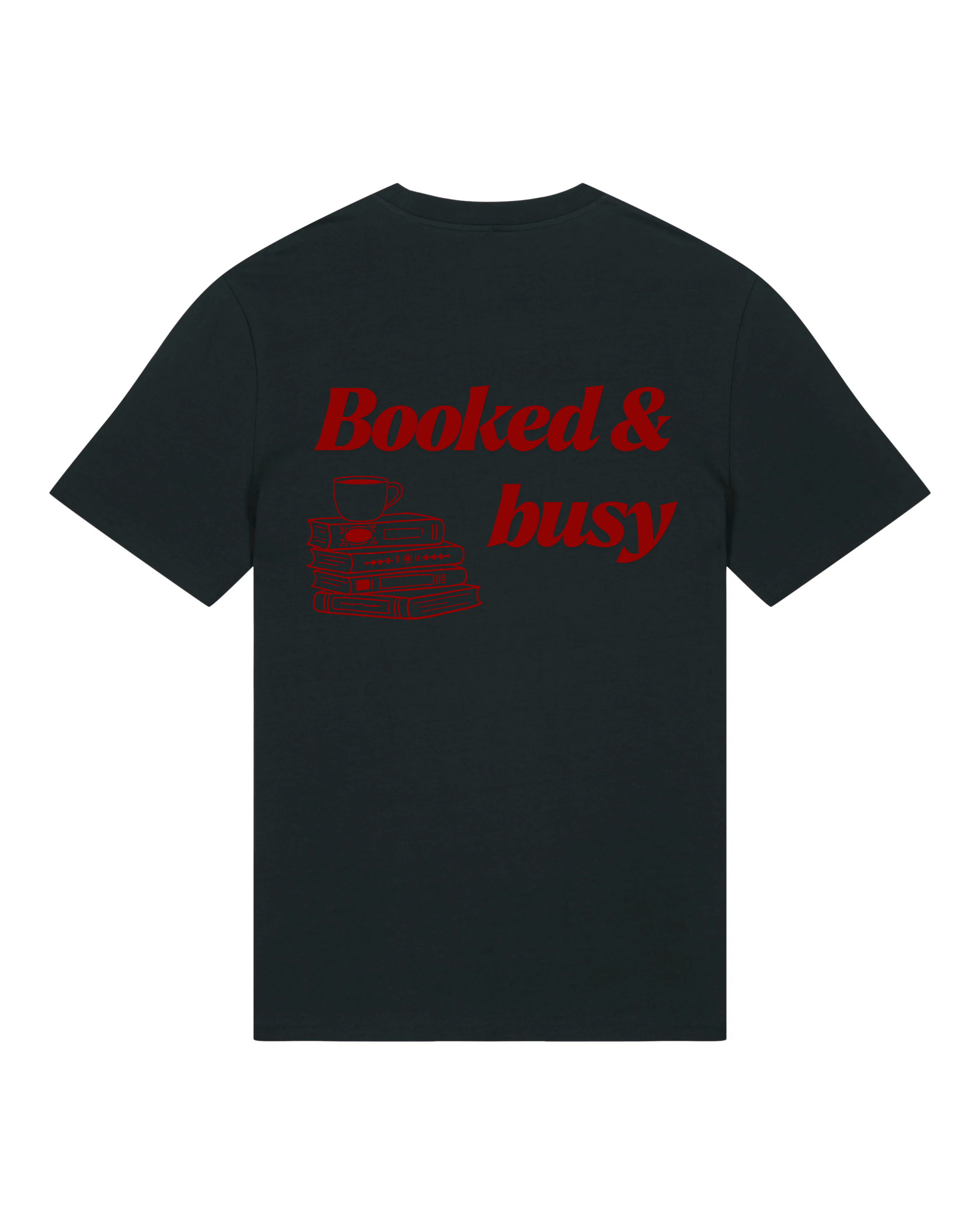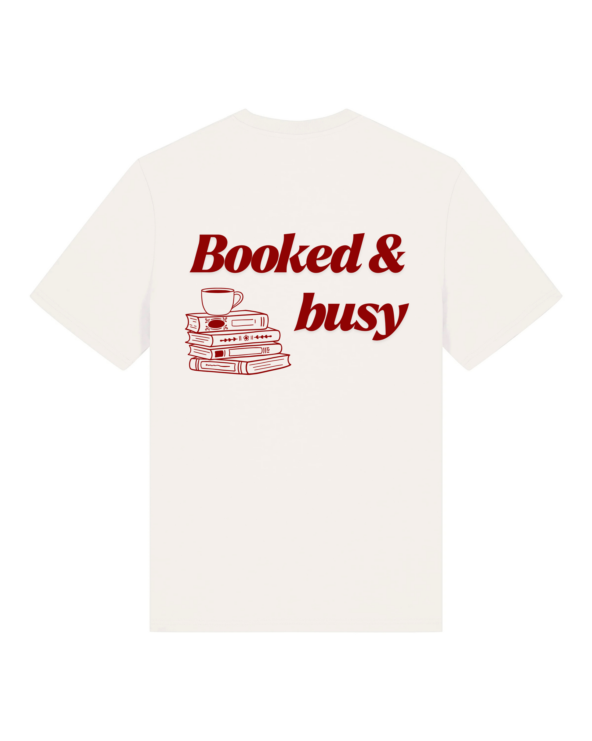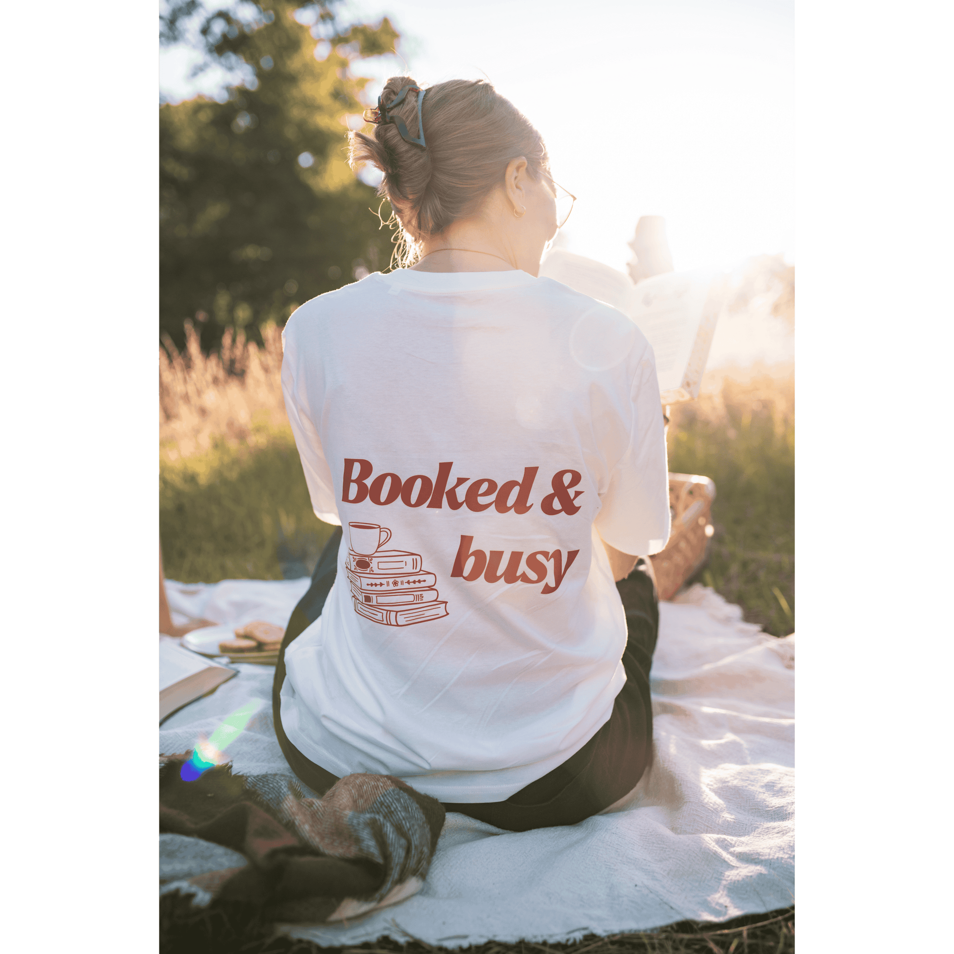 Unser Booked & busy Shirt ist in den Farben off-white, schwarz, pink und blau erhältlich. Es hat eine sehr lässige Passform, die insgesamt eher Oversize sitzt und dadurch größer ausfällt - bitte beachte die Größentabelle. Das Shirt besteht aus 100% Baumwolle (Bio-Baumwolle). Unser Shirt ist auf der Vorder- und Rückseite bedruckt.
