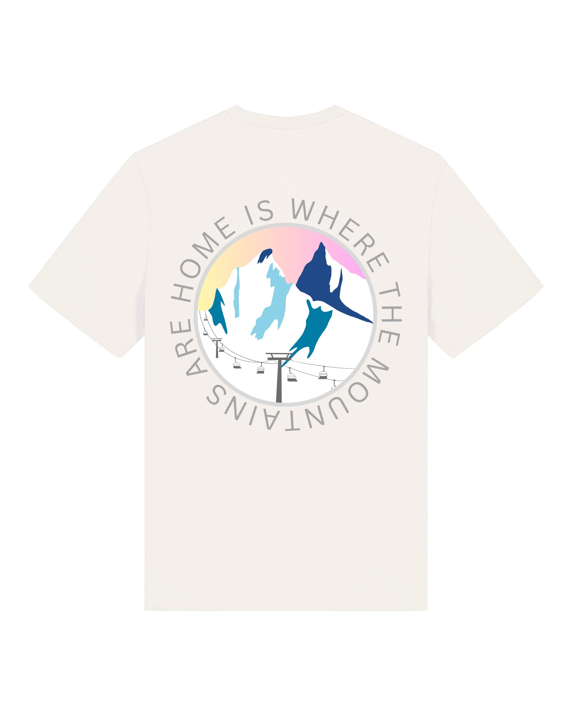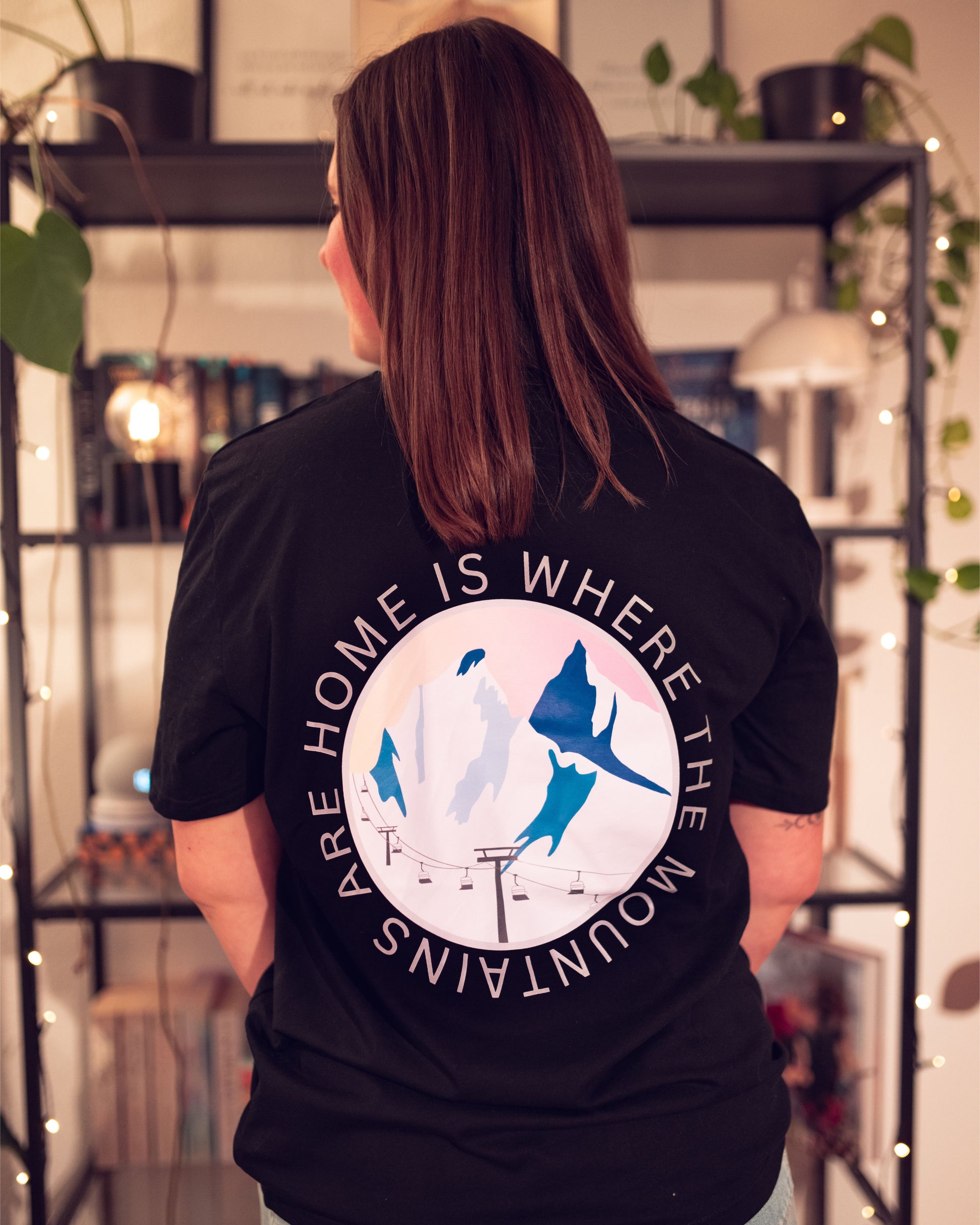 Unser Ski Shirt ist in den Farben off-white, schwarz und blau erhältlich. Es hat eine sehr lässige Passform, die insgesamt eher Oversize sitzt und dadurch größer ausfällt - bitte beachte die Größentabelle. Das Shirt besteht aus 100% Baumwolle (Bio-Baumwolle). Unser Shirt ist auf der Vorder- und Rückseite bedruckt.