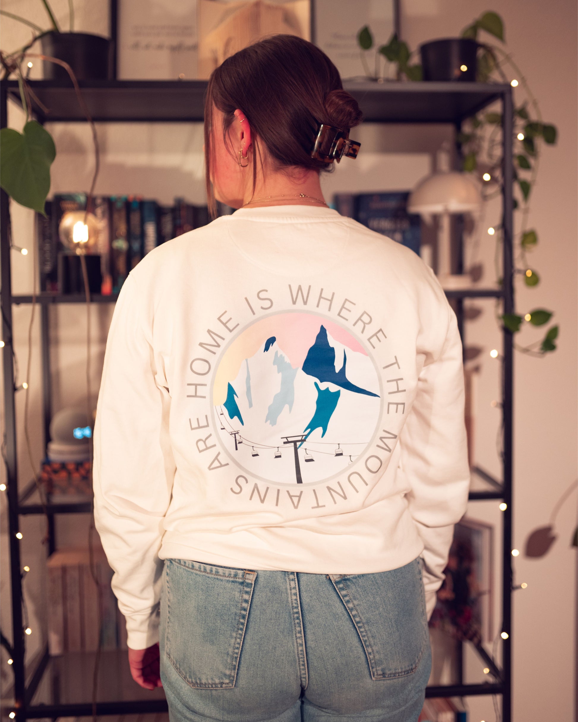 Unser Ski Pullover ist in den Farben off-white, schwarz und blau erhältlich. Es hat eine sehr lässige Passform, die insgesamt eher Oversize sitzt und dadurch größer ausfällt - bitte beachte die Größentabelle. Der Pullover besteht aus 100% Baumwolle (Bio-Baumwolle). Unser Pullover ist auf der Vorder- und Rückseite bedruckt.