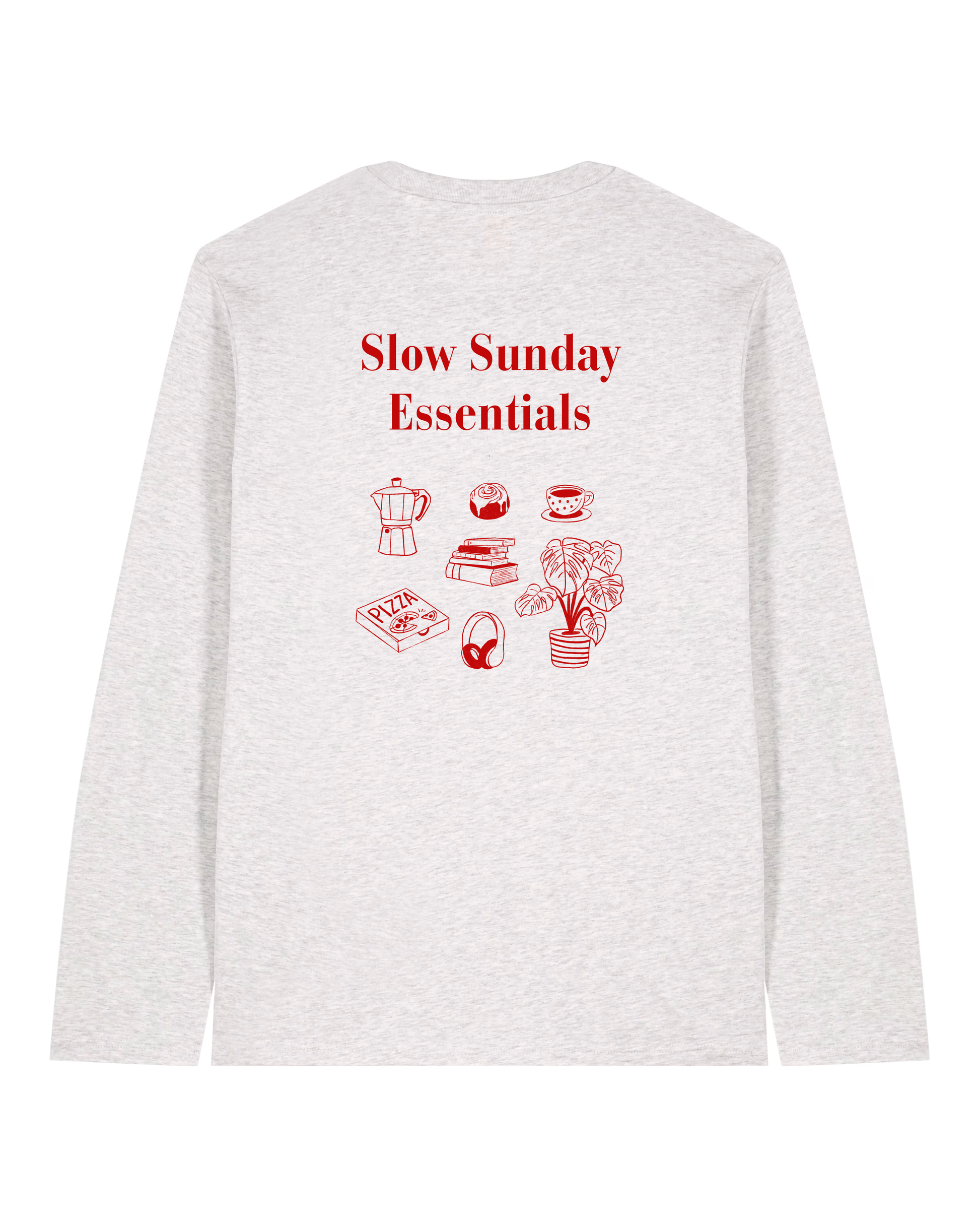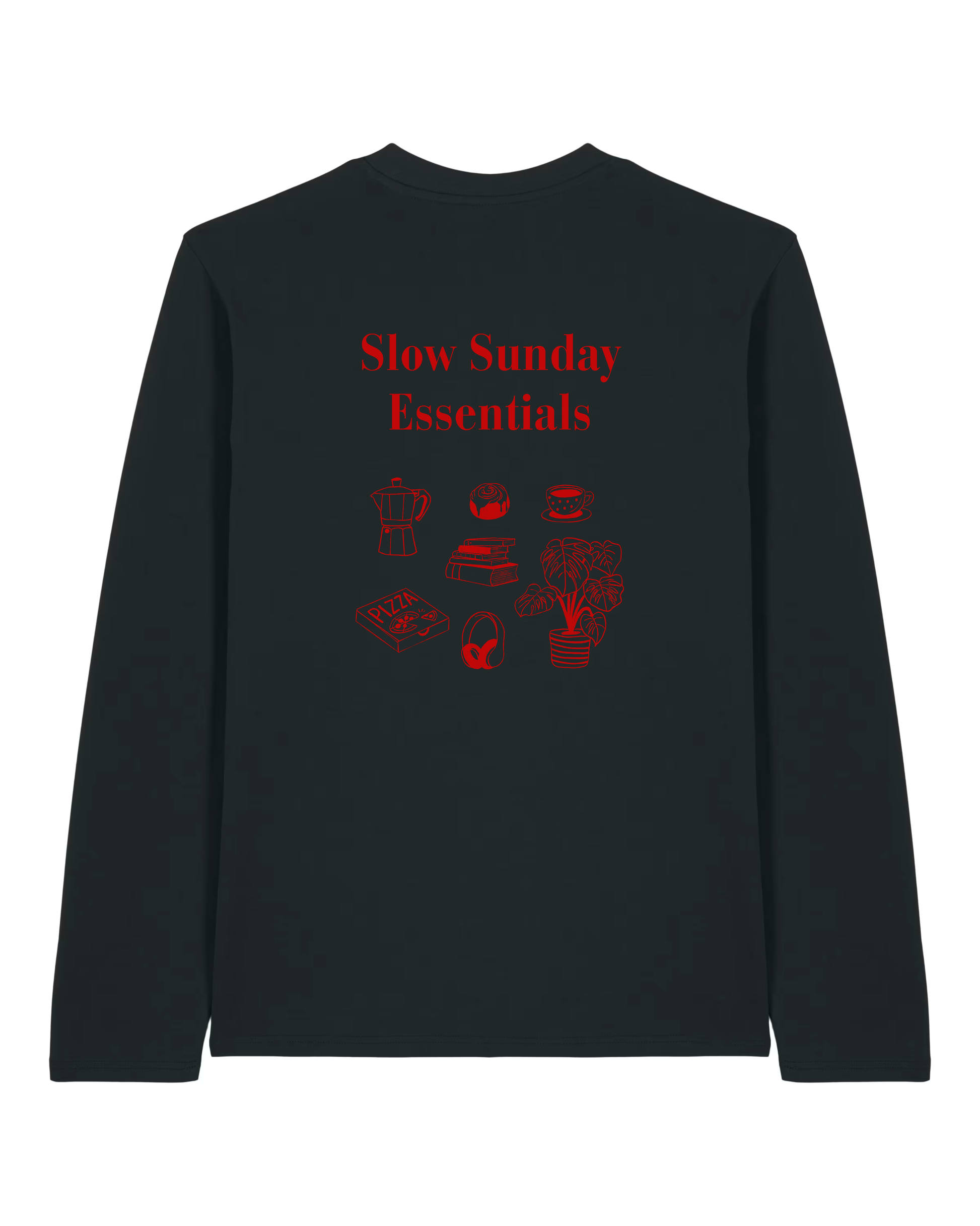 Unser Sunday Longsleeve ist in den Farben grau und schwarz erhältlich. Es hat eine sehr lässige Passform, die insgesamt eher Oversize sitzt und dadurch größer ausfällt - bitte beachte die Größentabelle. Das Shirt besteht aus 100% Baumwolle (Bio-Baumwolle). Unser Longsleeve ist auf der Vorder- und Rückseite bedruckt.